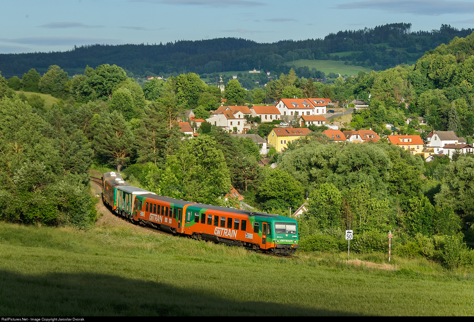 | CZ / 194 Nove Udoli - Ceske Budejovice (Os 8112) GAGARIN. In the background Stare Dobrkovice, a suburb of Cesky Krumlov. |