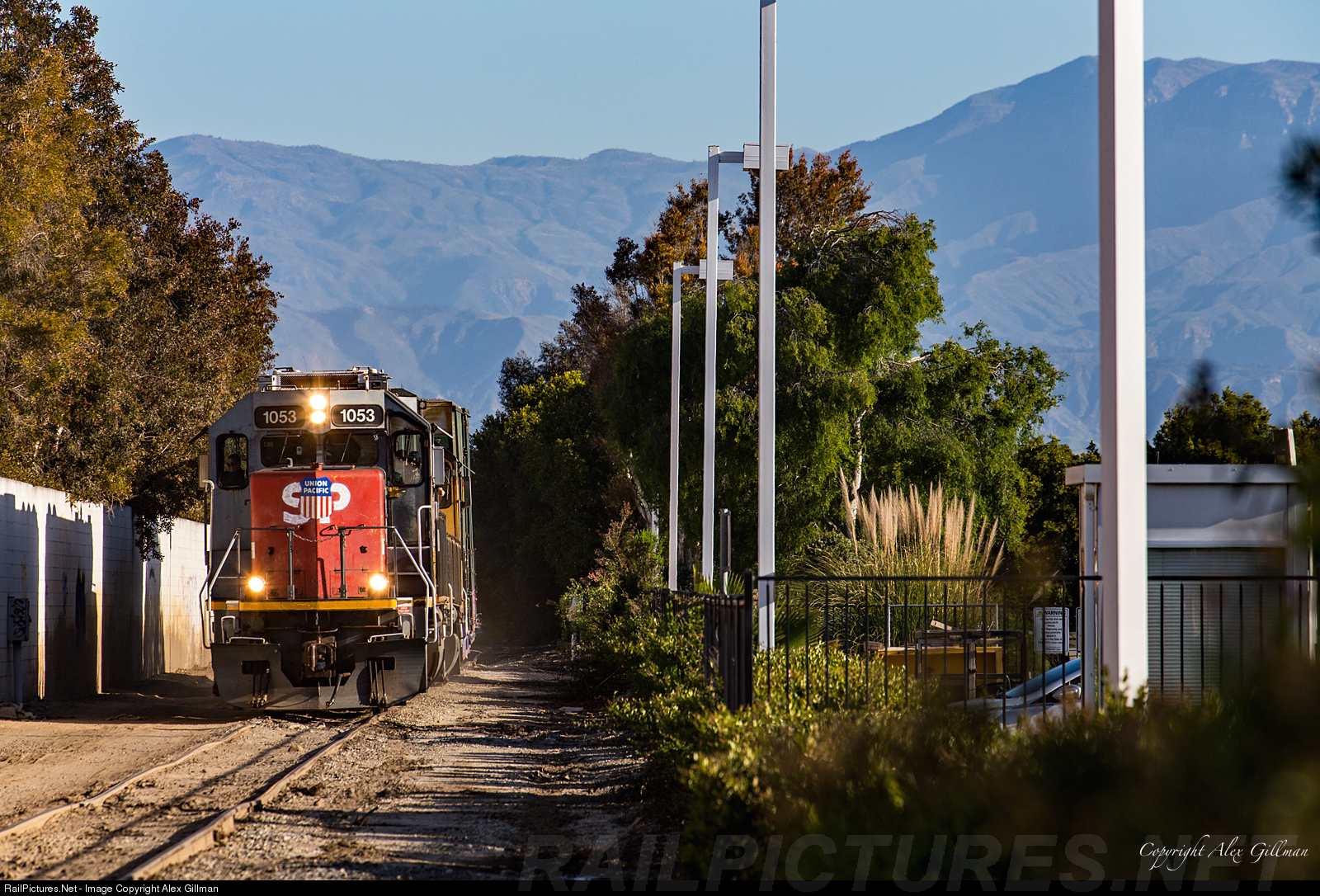| Rocking back and forth down the overly worn out right-of-way that makes up the PG spur in Oxnard, UP 1053 and a fellow GP60 make their way back toward the mainline with a single CNW boxcar. |