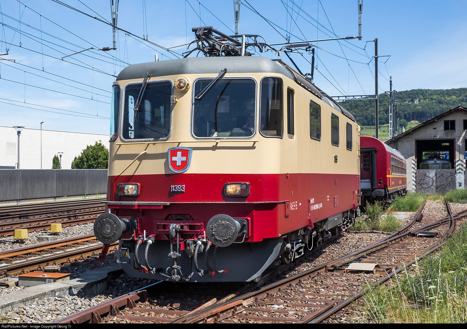 Re 421 # 393 (Re 4/4 II # 11393) of the International Rolling Stock Investment Gmbh (IRSI), running for the TR TransRail railway, in Sissach.