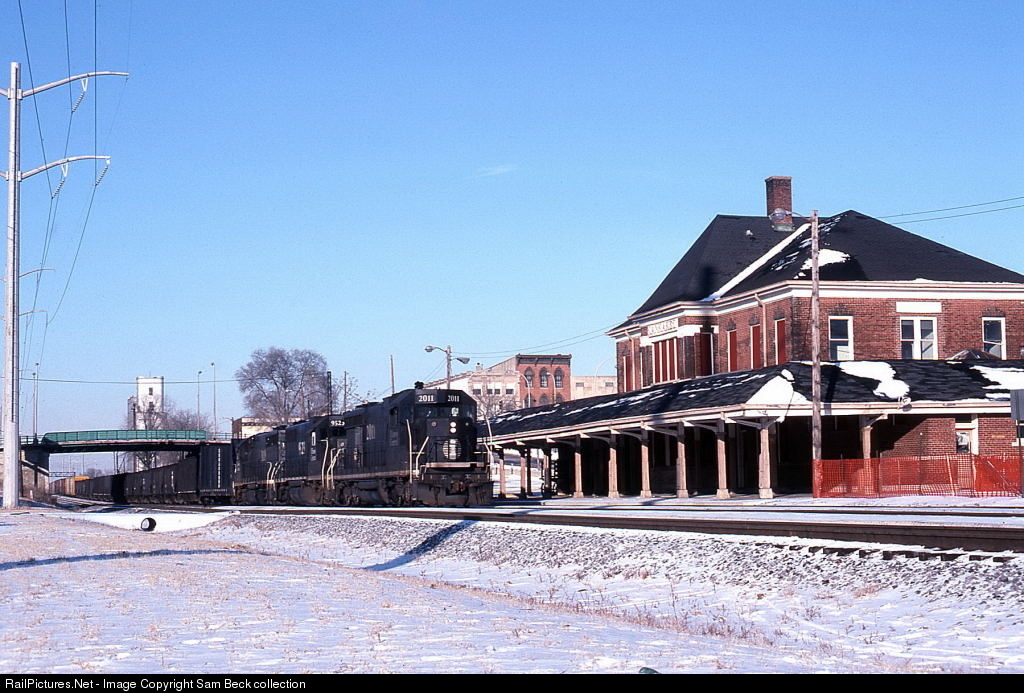 On the first day of 1991, an Illinois Central mixed freight passes the former Kankakee passenger depot. Paul Meyer photo.