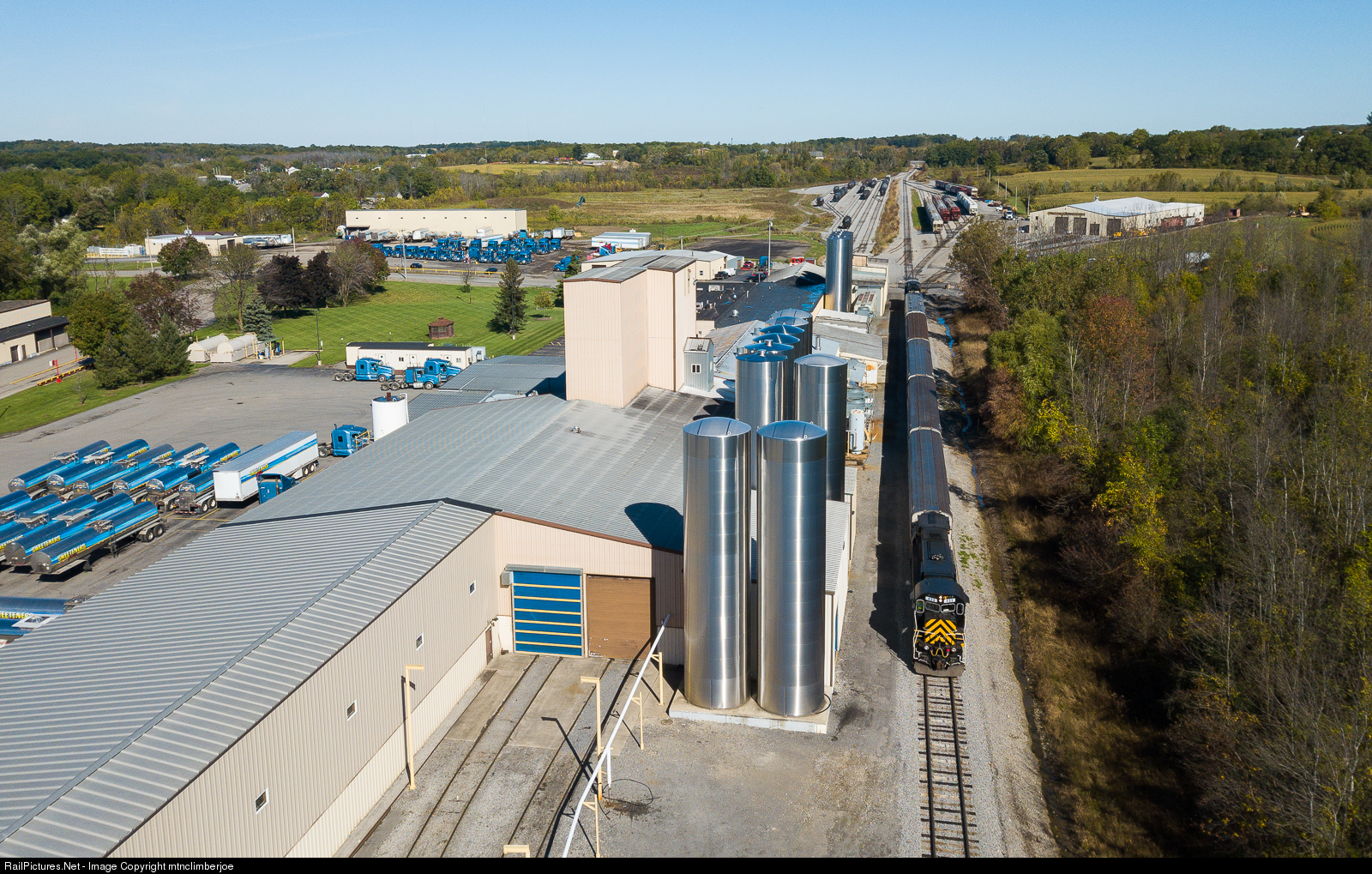 Livonia, Avon & Lakeville Alco C430 leads an excursion train as it nears the end of the line in Lakeville, New York. The train is passing by the Sweetners Plus facility, one of the railroad's primary customers. This excursion was being run for the Rochester & Genesee Valley Railroad Museum.