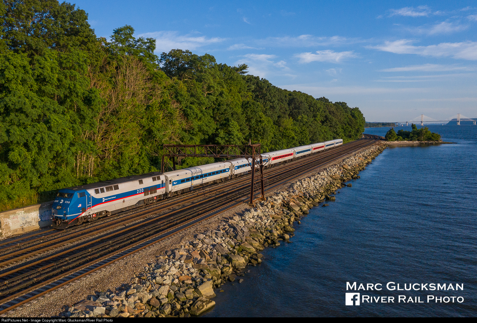 Central Remnant. MTA Metro-North Railroad Train 8849 (MNCW 220, P32AC-DM leading) passes the former New York Central Railroad signal bridge south of the Scarborough Station on Thursday, July 9, 2020. In the background, the New Tappan Zee (Governor Mario Cuomo) Bridge spans the widest area of the Hudson River. The signal bridge is one of several of its kind in the area, none of which have had signals on them for many years.
