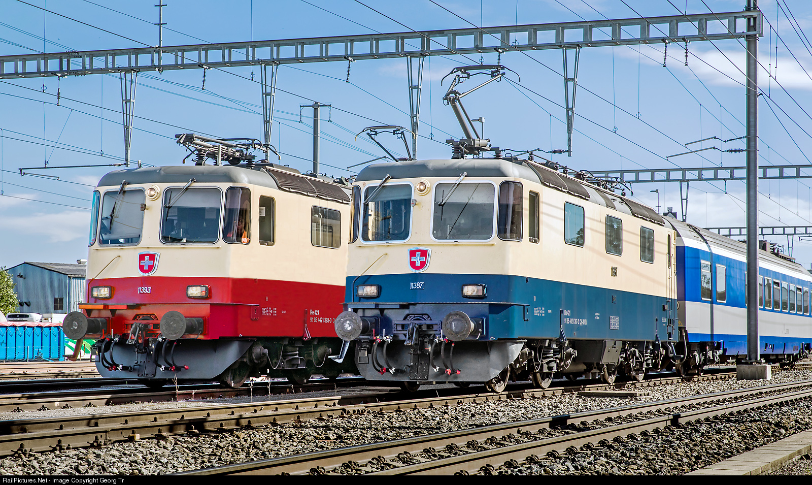 RailPictures.Net Photo: 421 393, 421 387 IRSI (International Rolling Stock Investment Gmbh, Frauenfeld) Re 421 (Re 4/4 II) at Oensingen, Switzerland by Georg Trüb