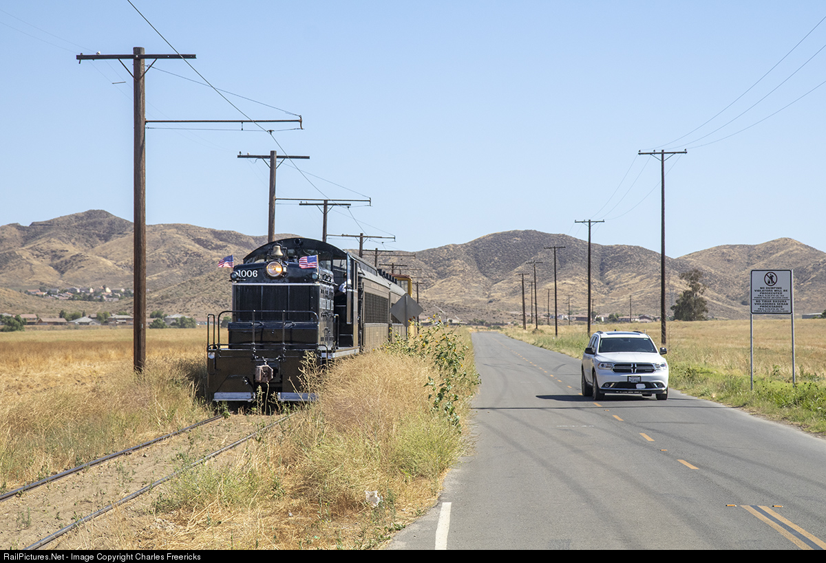Although this is listed as an EMD SW1, it's really an EMC SW1, from before EMC was purchased by GM. Beautifully restored by the folks at SCRM, SP 1006 has just shoved its train to the end of track, south of the museum, and is about to begin its pull up to 7th Street with the last train of the day.