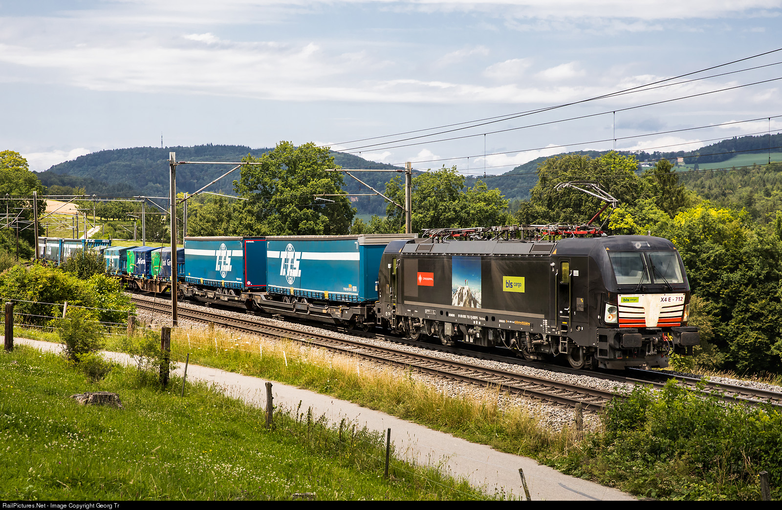 | Siemens Vectron 193 # 712 of the Mitsui Rail Capital Europe BV (MRCE), designated as X4 E-712, rented to the BLS Cargo, is pulling the southbound intermodal train 40105 from Bierset/Belgium to Piacenza/Italy on the Bözberg north ramp between Hornussen and Effingen. |
