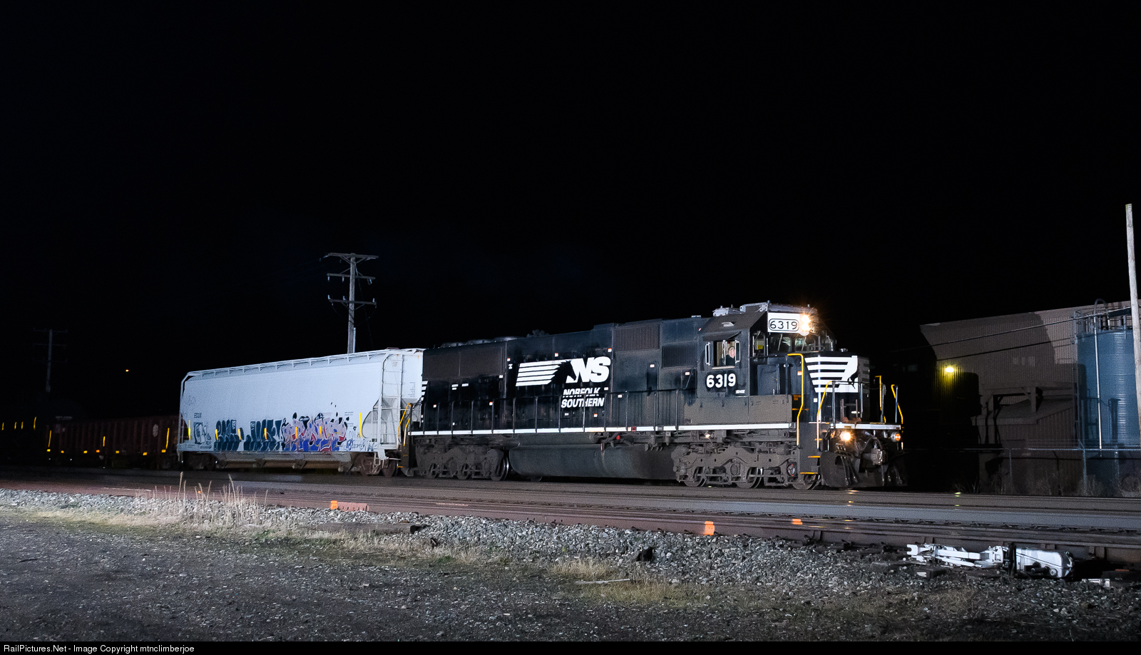 A solo SD40E leads the NS Conneaut to Erie local as it makes its way back west to Conneaut, crossing Pittsburgh Ave on the west side of Erie, Pennsylvania. The train outlawed in Erie and had to be recrewed, delaying the normal afternoon run until after dark.