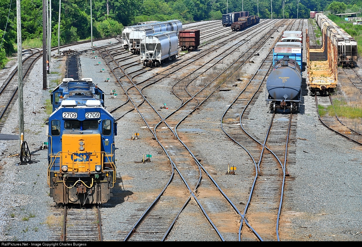 | Familiar territory. This 40 year old locomotive should feel right at home in the ex-Seaboard Coast Line Thomasville Yard. CSX 2709 was built for the SCL by GM-EMD in 1980 and is still working hard after all these years shuffling cars and working locals across the CSX system. |