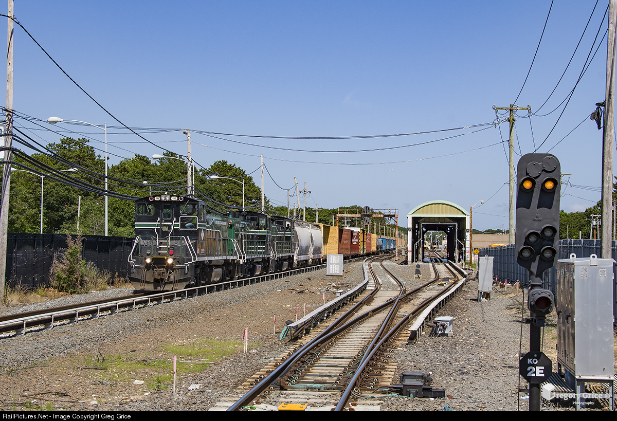 New York & Atlantic Railway's RS-71 heads west through KO Interlocking in Ronkonkoma with a three pack of cube diesels (MP15ACs).