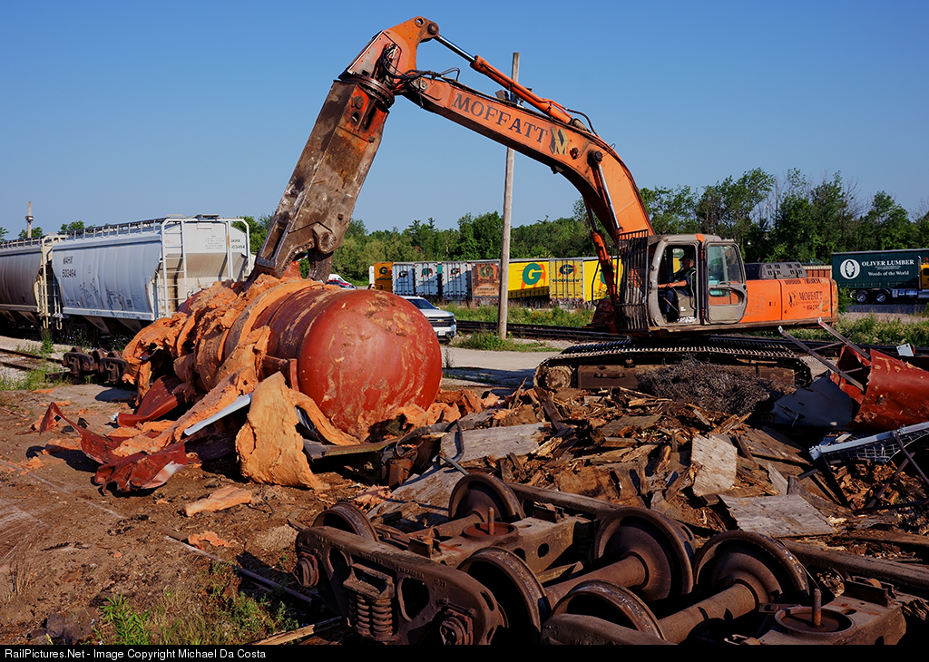 The slow painful death of this old Canada Starch tank car being ripped apart like a T-Rex ripping apart it's prey.