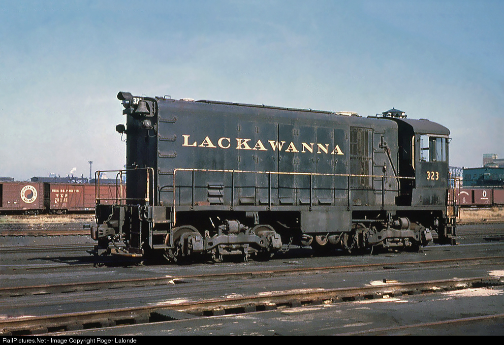 Renumbered for the EL 323 (ex-DL&W 410). The DL&W purchased eight high hood Alco HH-660 switchers, they were rated at 660hp. Built in 1933-1934 and were numbered 401-411. William Clynes Photo from my slide Collection.