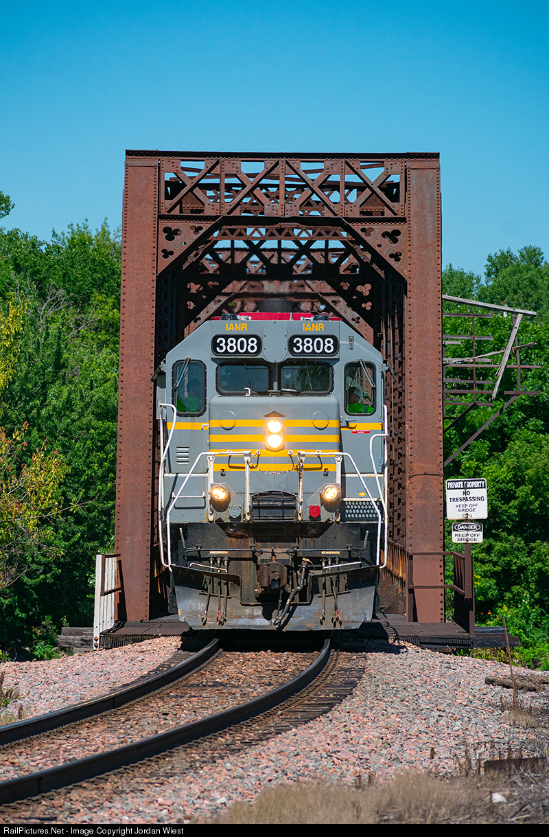 RailPictures.Net Photo: IANR 3808 Iowa Northern EMD GP38-2 at Cedar Falls, Iowa by Jordan Wiest