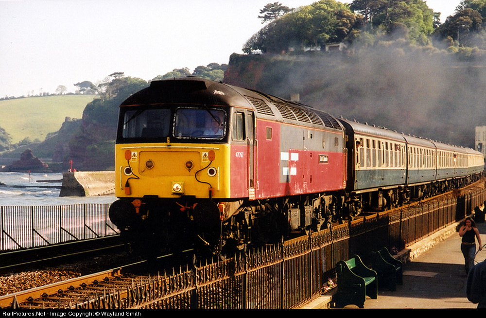 | 47767 "Saint Columbo" passes along Marine Parade, Dawlish with an excursion returning from the Eden Project in Cornwall. |