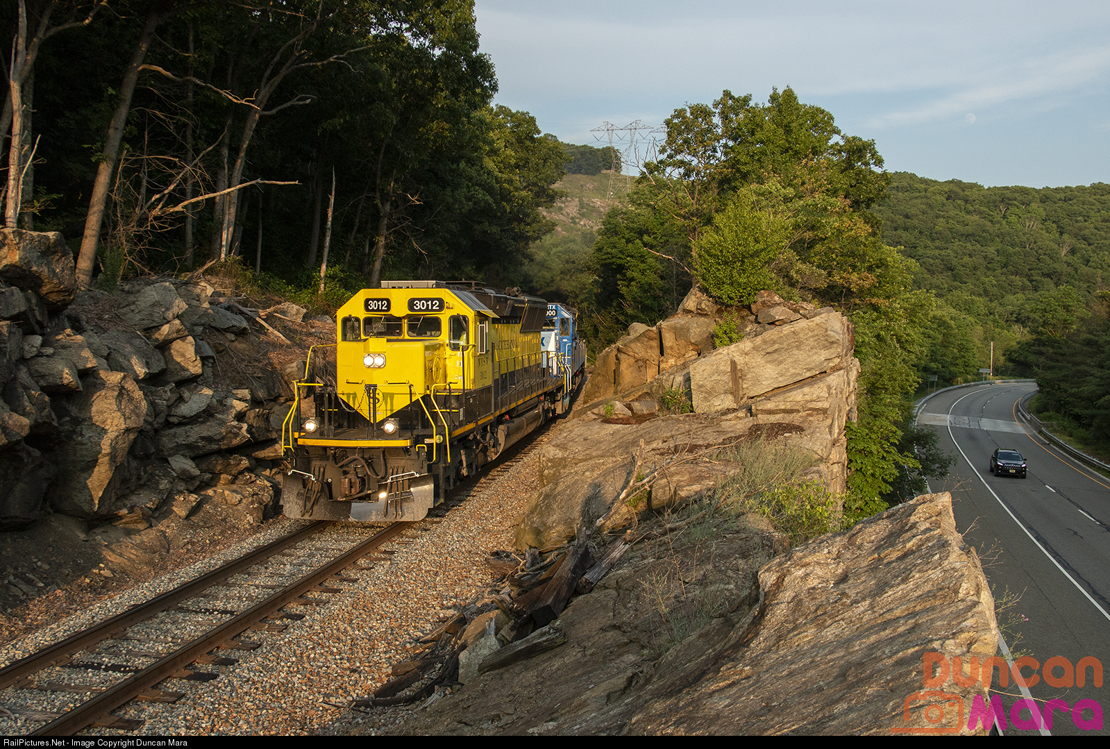 NYS&W SU-99 comes through the series of rock cuts above NJ Route 23 at Stockholm.