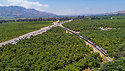 A Scene From "Old California." A far cry from plying the rails of its first owner, the Pennsylvania Railroad (ex-PRR 2262), this GP35 still earns its keep now on the Fillmore & Western Railway. This morning was no different for the veteran 56-year-old unit, now wearing No. 3501, as it served on the point of an inbound tank car train that was interchange to the shortline's motive power in Santa Paula. With their air test and inspection complete, the train is seen on the move slicing through one of the many orchards it will pass on its way to Fillmore.