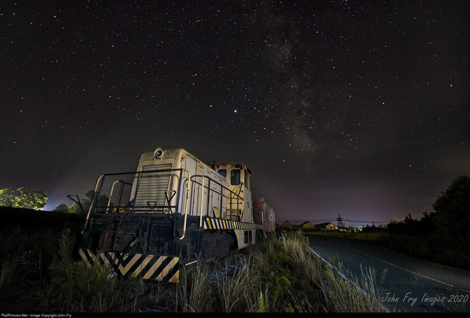 Although operational, the former US Navy 80- ton center cab sits outside the remains of the Alcoa plant. It and a former Seaboard bay window caboose enjoy the stars on a clear night waiting for a call back to duty.