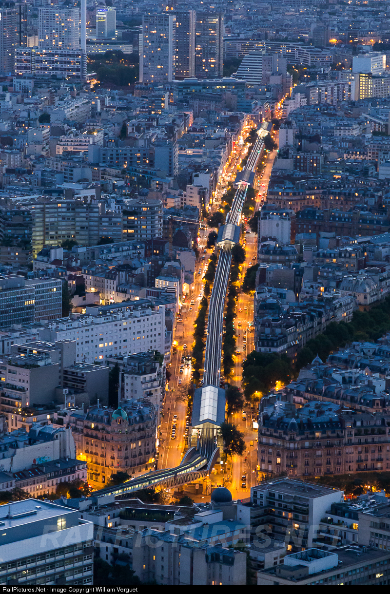 Metro Line 6 viaduct to Charles de Gaulle - Etoile seen from Montparnasse Tower; With Sèvres-Lecourbe station below, followed by Cambronne, La Motte Piquet-Grenelle and Dupleix stations