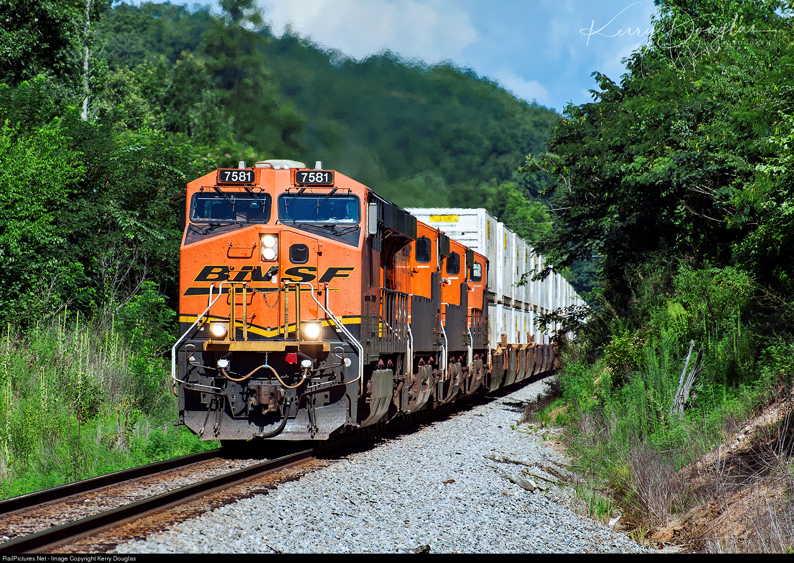 With a quartet of matching BNSF GE's on the head the alternate section I64 (Memphis,TN/BNSF-Atlanta,GA) had no issue making the run up the north side of Howardsville Grade on the NS Atlanta North-End. We're in Apison, TN the most southern rural community just outside of the city of Chattanooga, and this is also the most southern point that the Atlanta North-End touches in the State of Tennessee. The Intermodal train is only about 4 rail-miles from crossing into the State of Georgia. Note the ES44DC on the head, a sight that isn't common on this premium Intermodal train, well at least to my knowledge.
