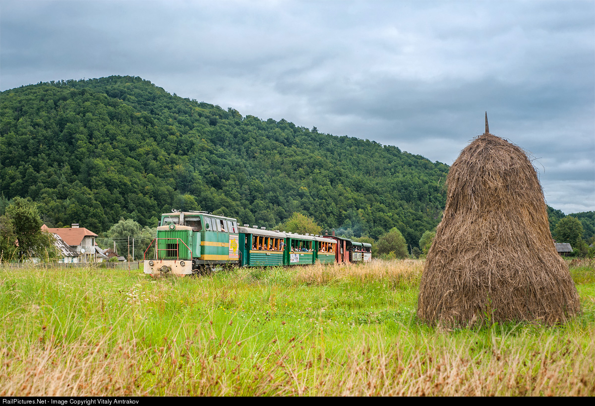 | Besides the freight traffic, the Vyhoda Narrow-Gauge Railway serves tourist trains. Here one can see the train led by TU6P-0037 diesel loco leaving for another trip. |