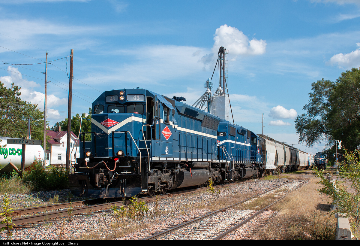 | PGR 43 and 42 lead L2 north through Bloomer. Things are pretty slow on the WN these days. As a result, PGR 40 was recently sent back to Minnesota. |