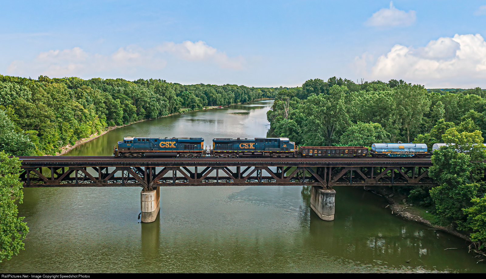 CSXT 751 Leads Eastbound in the afternoon across the Auglaize River in Defiance Ohio on the CSX Garrett Sub