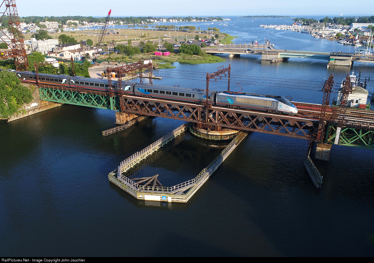 Getting the old with the new(er). An Amtrak Acela crosses the 124-year-old Walk Bridge in Norwalk. Ironically, the bridge will outlast the train, though both are slated for replacement in the not-too-distant future.