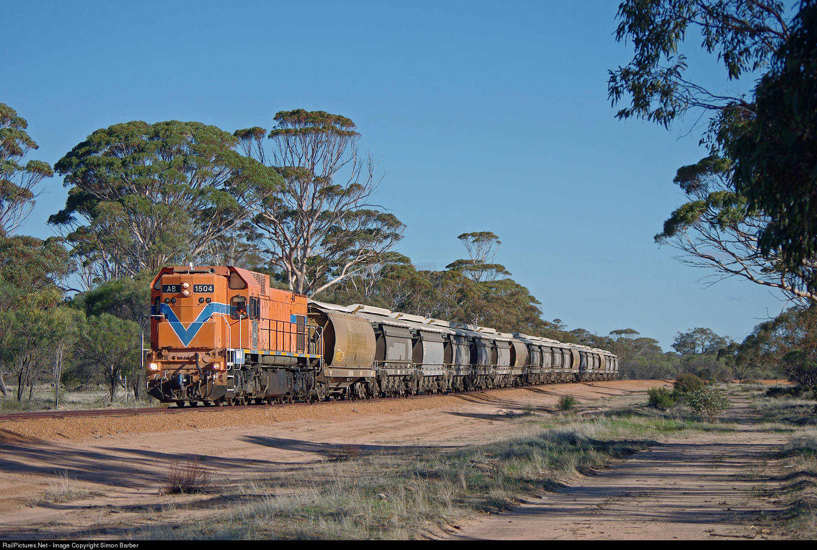 AB1504 works a grain train on the now closed railway which ran between West Merredin and Narrogin via Corrigin.