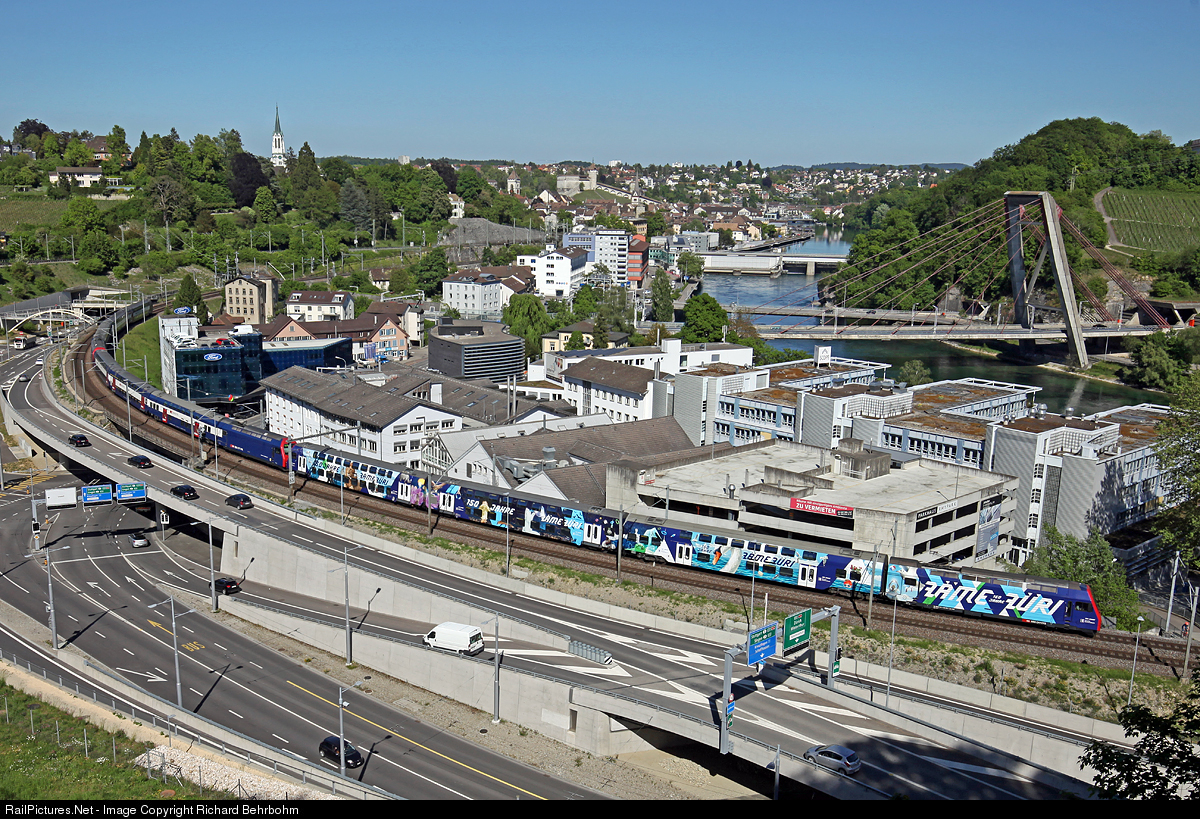| Since march 2019 this double deck commuter trainset (DPZ) of the S-Bahn Zürich has a publicity paint scheme "Zäme Züri" (Zurich together). The train is running in a S 9 service Schaffhausen - Uster. |