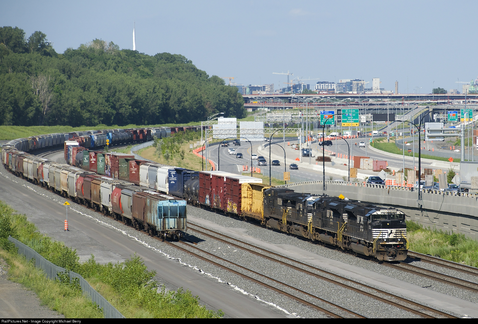 A pair of EMD's and a pair of GE's are the power on a rare daylight CN 529 (NS 7252, NS 1188, NS 4230 & NS 9284). This train has two days worth of CP 931's, which is the ID of this train when it is on CP tracks until Rouses Point, where CN picks it up to bring to Montreal. At left are a large cut of grain cars on Track 29.