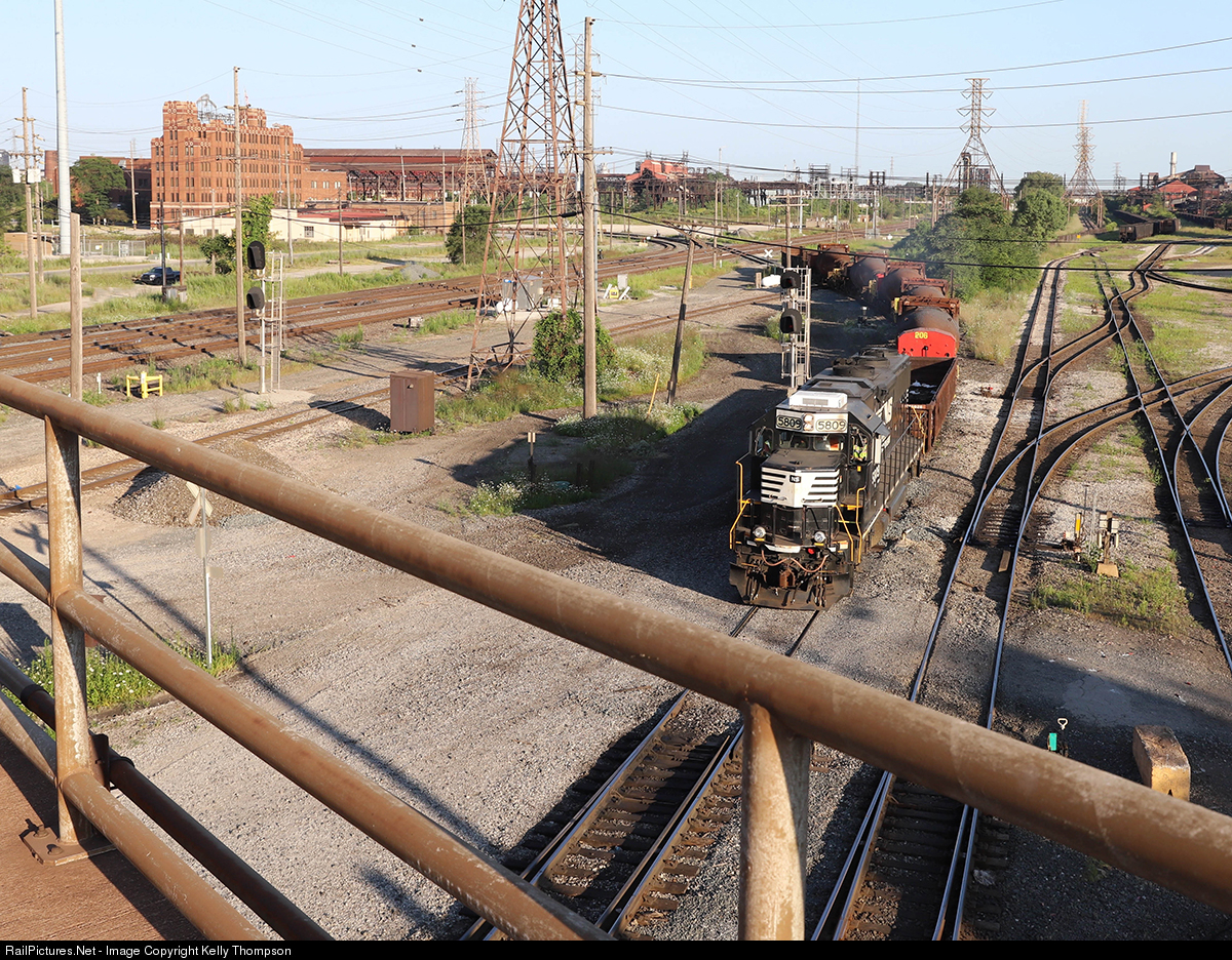 | Peace at CP 502 is broken by a morning bottle train to ArcelorMittal. Leading the train is NS 5809, a rebuilt GP50. The NS bottle trains are exclusive to NWI but soon the contract will be going to the IHB. |