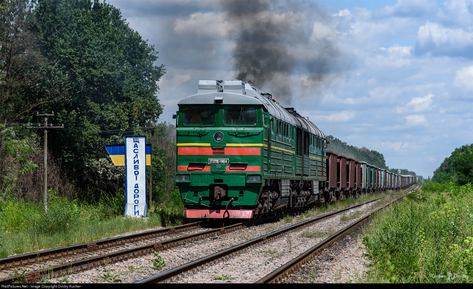RailPictures.Net Photo: 2TE116-1464 Ukrzaliznytsya (Ukrainian Railways) 2TE116 at Zhytomyr region, Ukraine by Dmitry Kucher