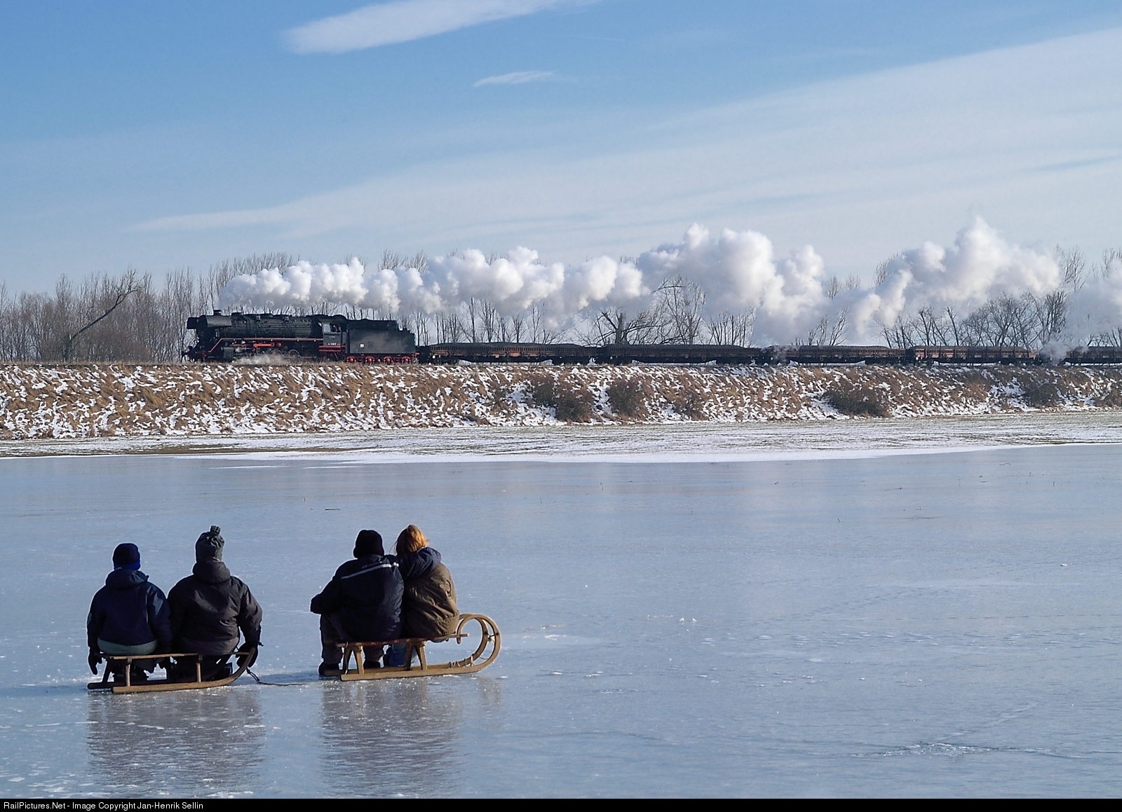 In October 2002 the time had finally come: I was able to say goodbye to analog photography with films that were lost in the laboratory, spoiled or scratched during development: I bought a digital single-lens reflex camera with an unbelievable 6 MP, a Nikon D100. In February 2003 the dearly desired opportunity arose to use this camera for the first time at a Plandampf event, equipped with an IBM MicroDrive hard disk in Compact Flash format, capacity 1 GB. Contrary to expectations, the camera's battery even survived the minus 20 degrees that prevailed on the morning of the first day of "winter steam on the Rennsteig". Due to this cold winter, a stable ice surface was created on the flooded meadows near Unterrohn, which was used by some children to go sledding on 02/14/2003, while the 44 1486-8 with DNG 83852 made its way from Bad Salzungen on time to Eisenach.