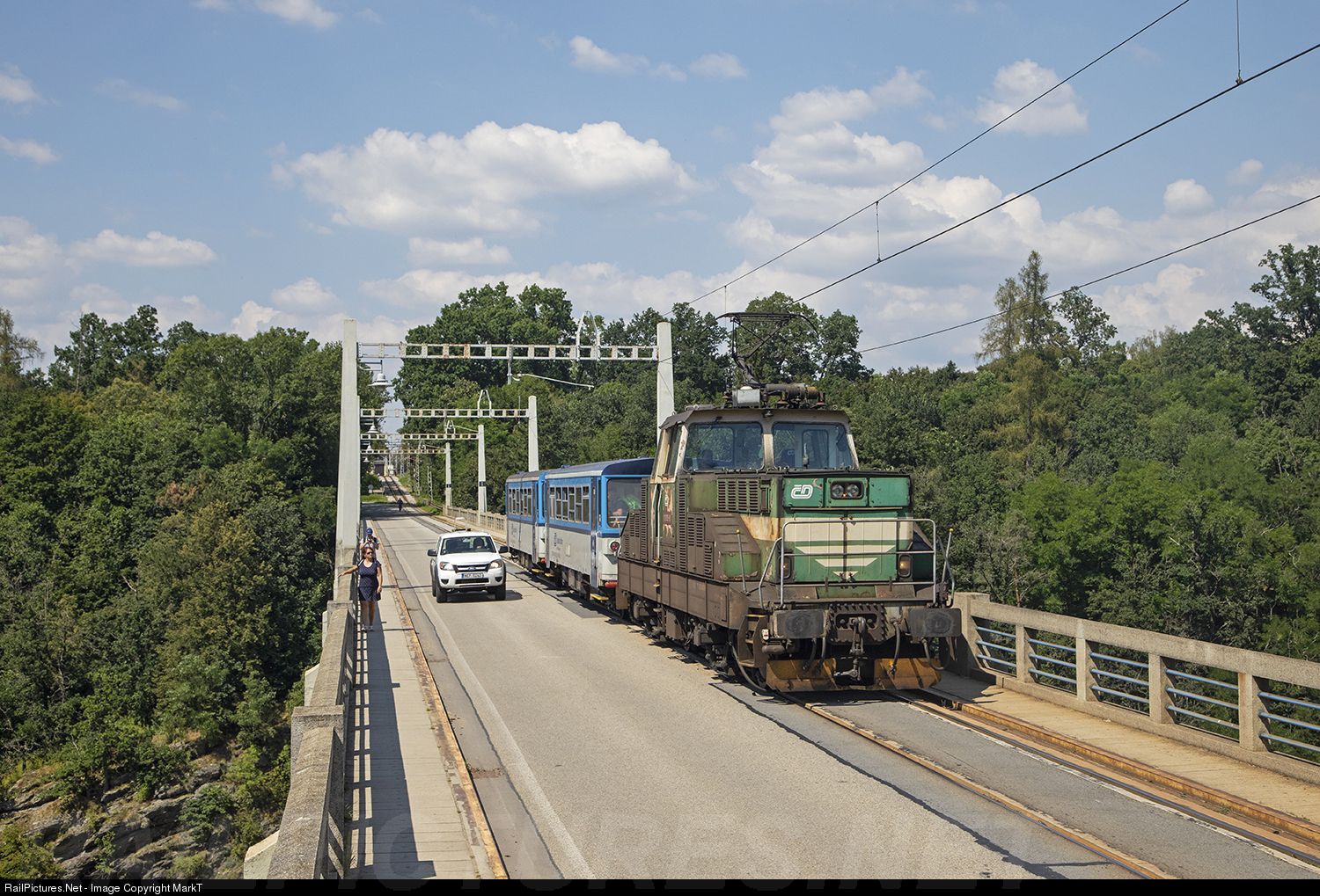 Leaving the terminus at Bechyne, trains have to share the viaduct with cars and pedestrians.... Whereas most street running is hit or miss, this street running happens twice an hour all day long!