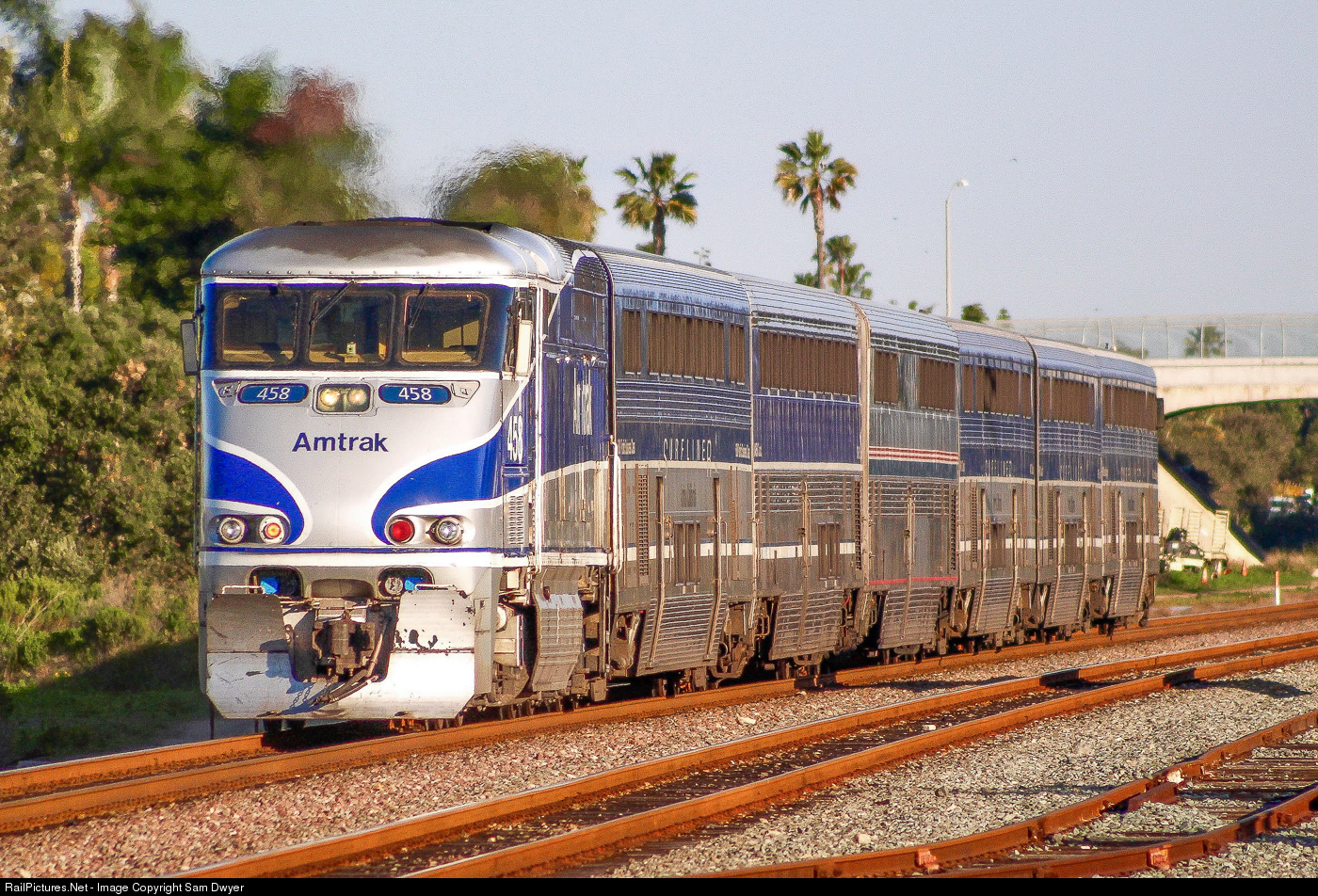 AMTK EMD F59PHI #458, the second to last F59PHI dedicated to the Surfliner makes its final trip north from San Diego. Later on in the day, 458 was dropped in Los Angeles and put on the Southwest Chief to Chicago where the unit would be delivered to Metra.