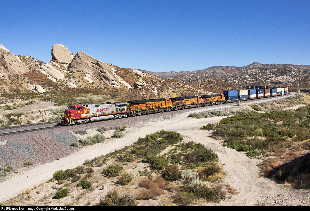 A nice surprise in the form of a warbonnet leader brings an over 13,000 foot, 15,000 ton S-LPCSCO3 down Cajon Pass. With 4 units up front and 3 in the middle, this massive consist was still able to make pretty good time heading up and down the Pass. Originally 4705 was supposed to get swapped out at Barstow due to a bad AC unit, but luckily got kept on. Once the train arrived at CP-Alameda, a pair of Watson Shuttle jobs would split the train and take it to various terminals in the Ports.