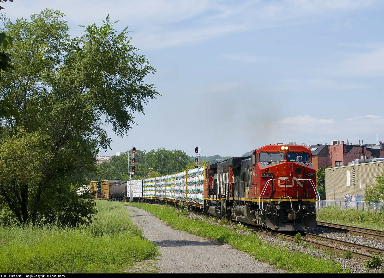 IC 2465 & CN 9454 lead a 40-car CN 324 eastbound, on its way to St. Albans, Vermont.