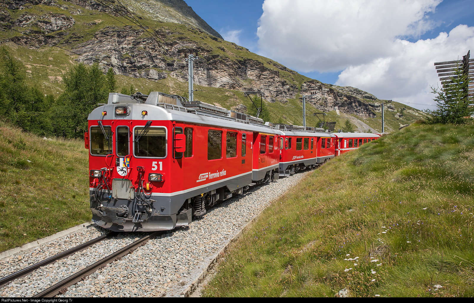 RailPictures.Net Photo: 51, 53 RhB - Rhätische Bahn ABe 4/4 at Alp Grüm, Switzerland by Georg Trüb