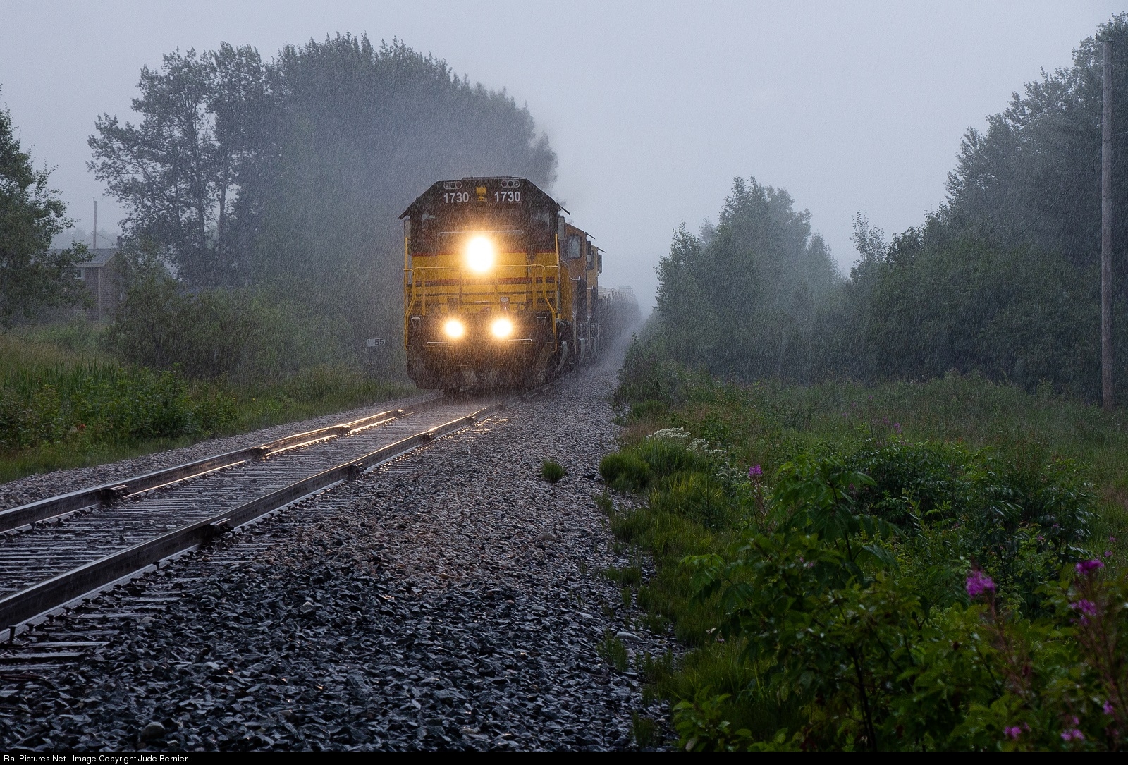 ONT 1730 is in the midst of a downpour as it crosses into Quebec.