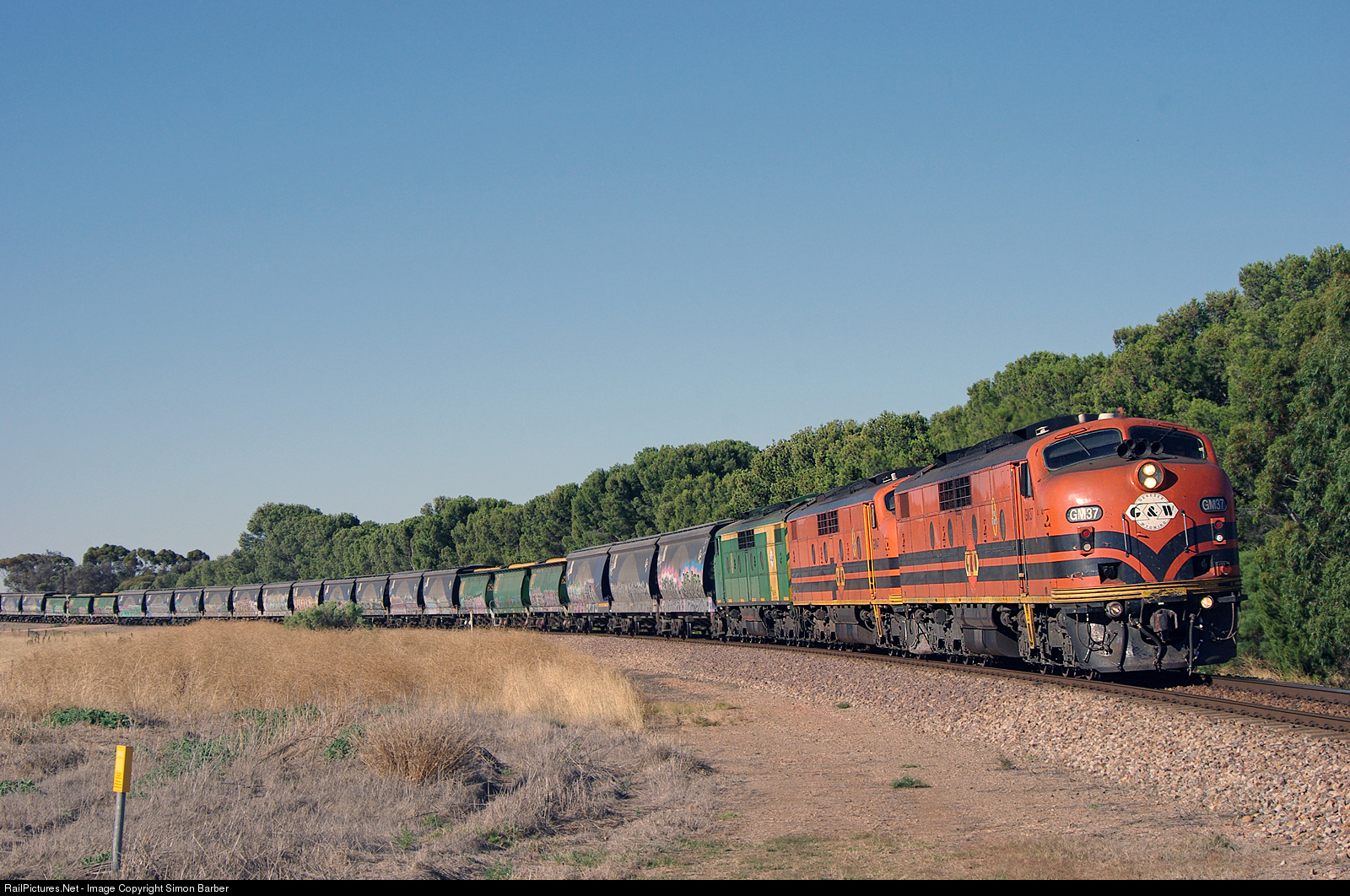 | GM37, GM47 and GM38 team to work on loaded grain train near Snowtown, South Australia. |