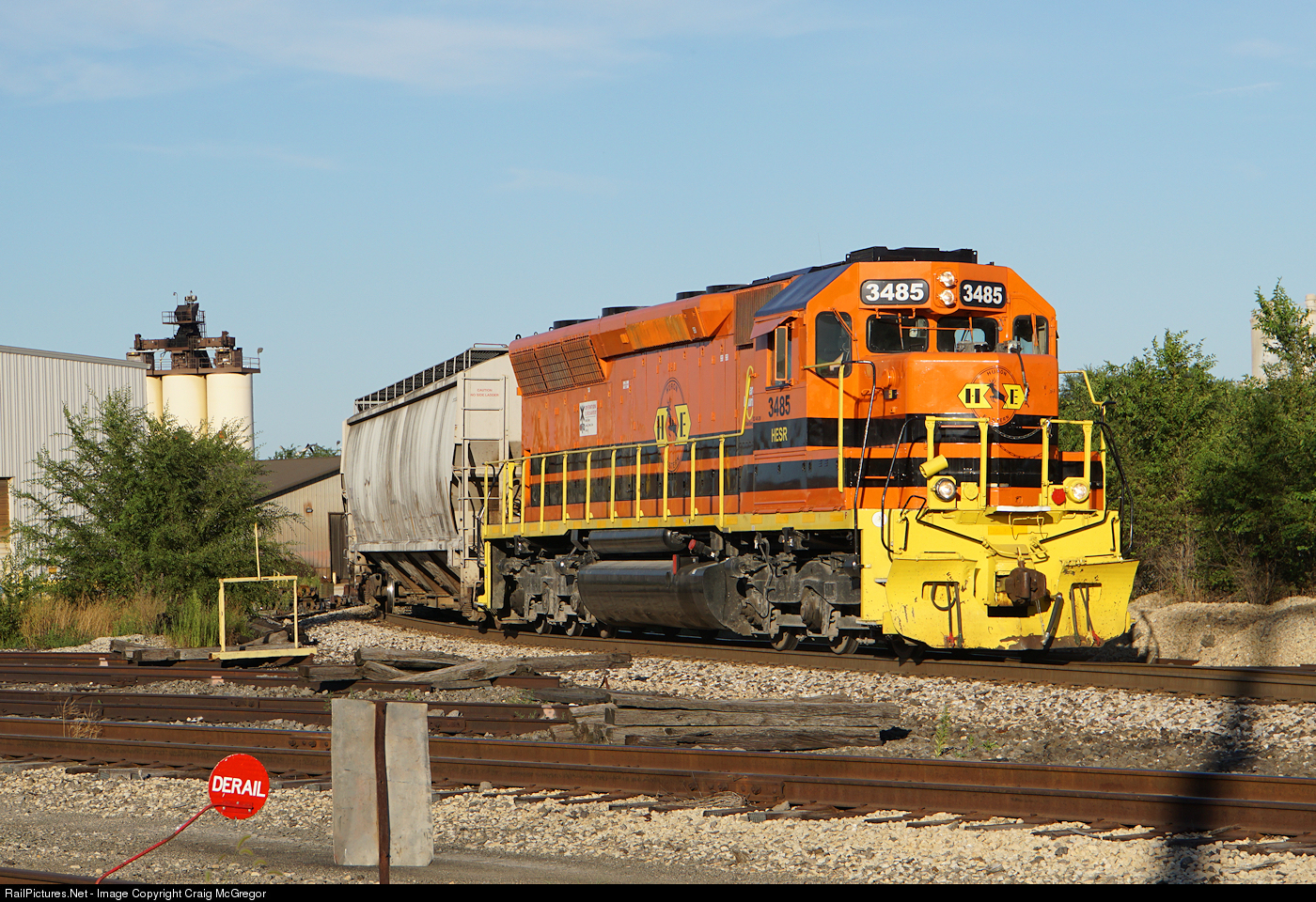 | Although repowered as a SD40-2, HESR3485 still shows off the SD45 profile as a TP&W crew backs grain loads into the ADM ethanol plant. |