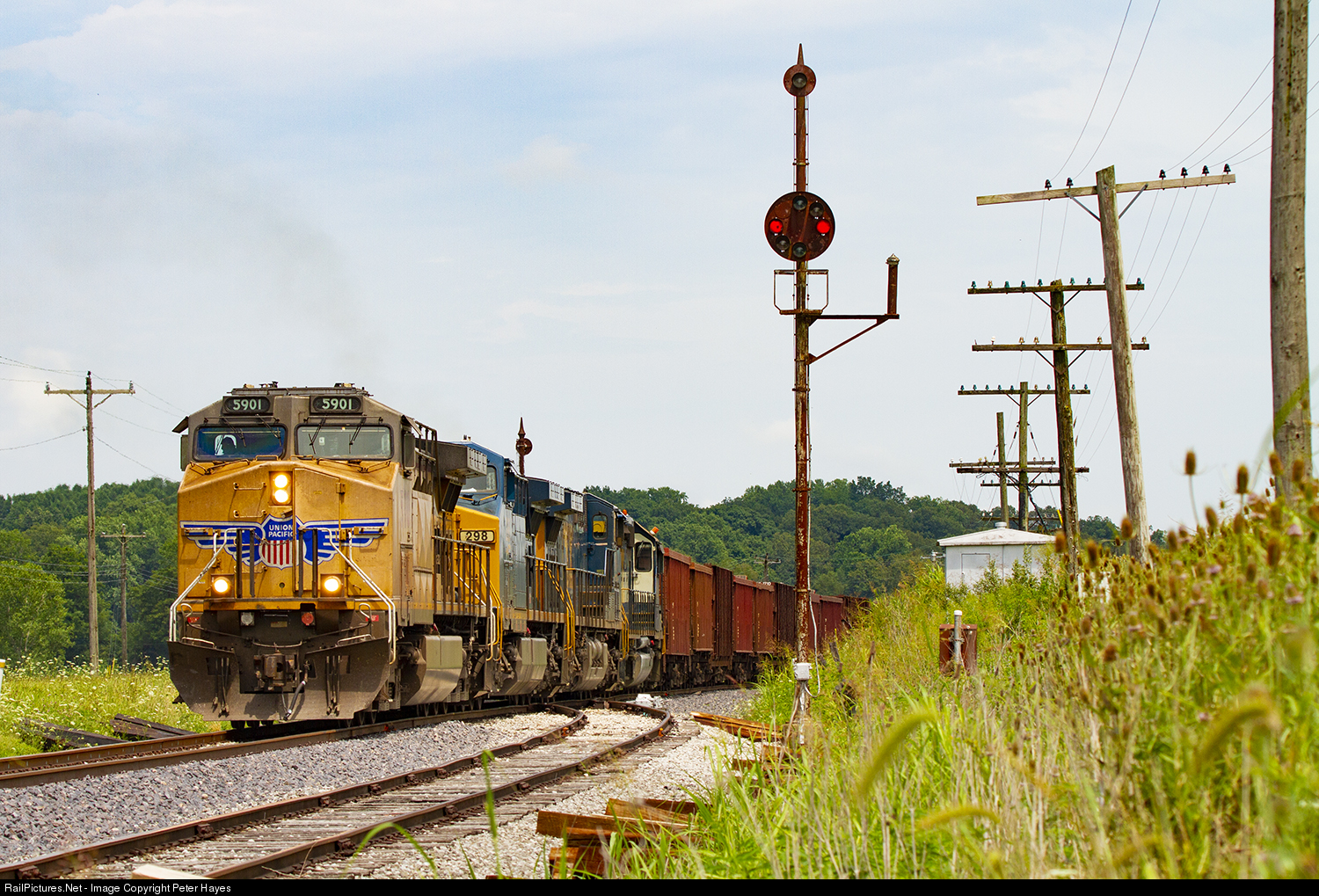 There's not much at EE Georgia to tip you off to the fact that it's 2020, and the once-prosperous mainline of the B&O hasn't had a through train in years. WO81, with UP power, shoves past the classic, if rusted, signals at this scenic siding after dumping ballast the day before.