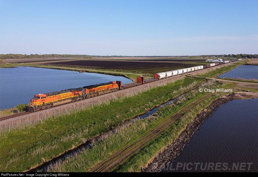The area north of Fenton looks to have alot of man made lakes around the Barstow Sub. Here a Galesburg to Grand Forks manifest train rolls towards the next crew change point at LaCrosse, WI, on the BNSF Aurora Sub. The train will join the Aurora Sub at Savanna, IL, in about 20 miles. Looks like they dig out some kind of dirt out of this area and why all the lakes?