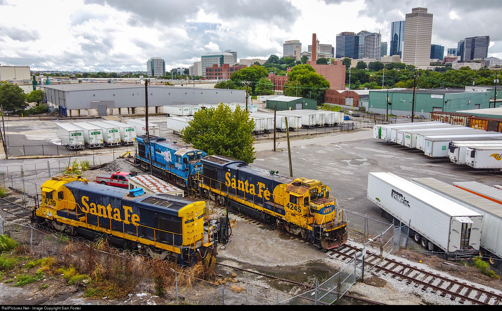 | All three of Nashville & Western’s B23-7s sit along Herman Street in Downtown Nashville. With newer GEs from the NERR on the property, RJ Corman has decided to put the old B23-7s up for sale. |