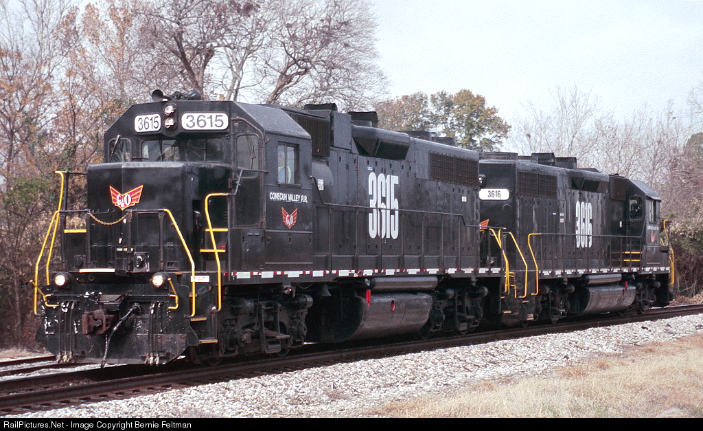 Conecuh Valley (COEH) GP38's #3615 and #3616 (built 10/1967 as B&O #3826) on CSX trackage rights (interchange track in the background)
