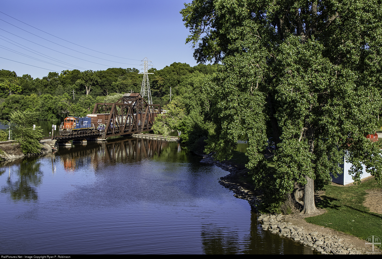 CN L521 heads back to Appleton and across the Fox River with a string of boxcars and a GTW GP9R as the sole power for the day.