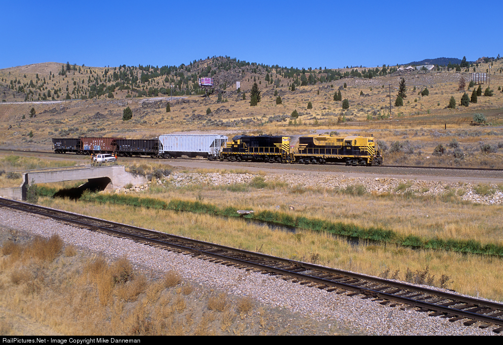 A short four-car Rarus Railway freight heads eastbound to the giant copper mine at Butte trundling along Silver Bow Creek between Silver Bow and Rocker, Montana, on September 25, 2006. This trackage has had a long, varied history that began as an electrified ore hauler named the Butte, Anaconda & Pacific Railway, founded by Anaconda Copper Mining Company in 1893. By 1967, the railroad dieselized and in 1969, tore down the electrification. By the early 1980s when Anaconda Mining closed its smelter, the traffic base quickly fell off making survival of the railroad in question. The railroad became the Rarus Railway in 1990 and went through a few other short-term iterations with names like Montana Western and Central Montana before being acquired by Patriot Rail in 2007 and changing its name back to—Butte, Anaconda and Pacific! Lead locomotive EMD GP9 No. 105 is still in its original paint scheme it received when built for BA&P in 1957.
