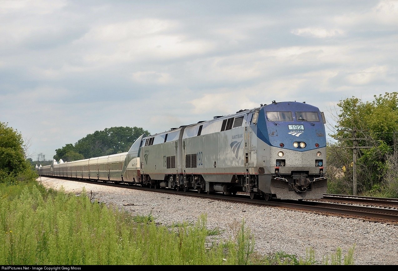 Amtrak 192 leads special train #952 thru Franksville, WI on August 23rd, 2020. Behind the locos are 2 sets of Talgo cars used in Cascades service in the Northwest. The cars are being replaced and are heading to Beech Grove for storage and a likely date with the scrappers torch.