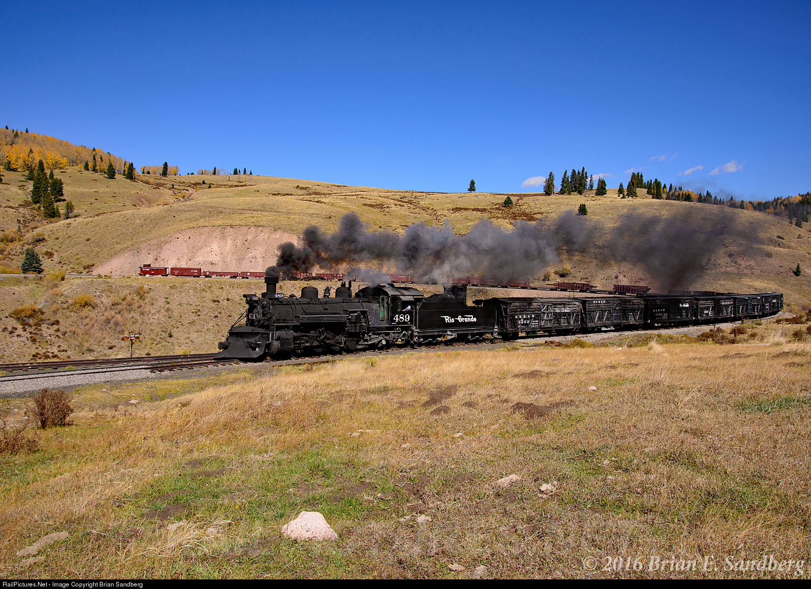 | D&RGW K36 #489 pulls into Osier, CO 10/5/16. This is the second of a two day 2016 Fall Photo Freight organized by the Friends of the Cumbres and Toltec. |