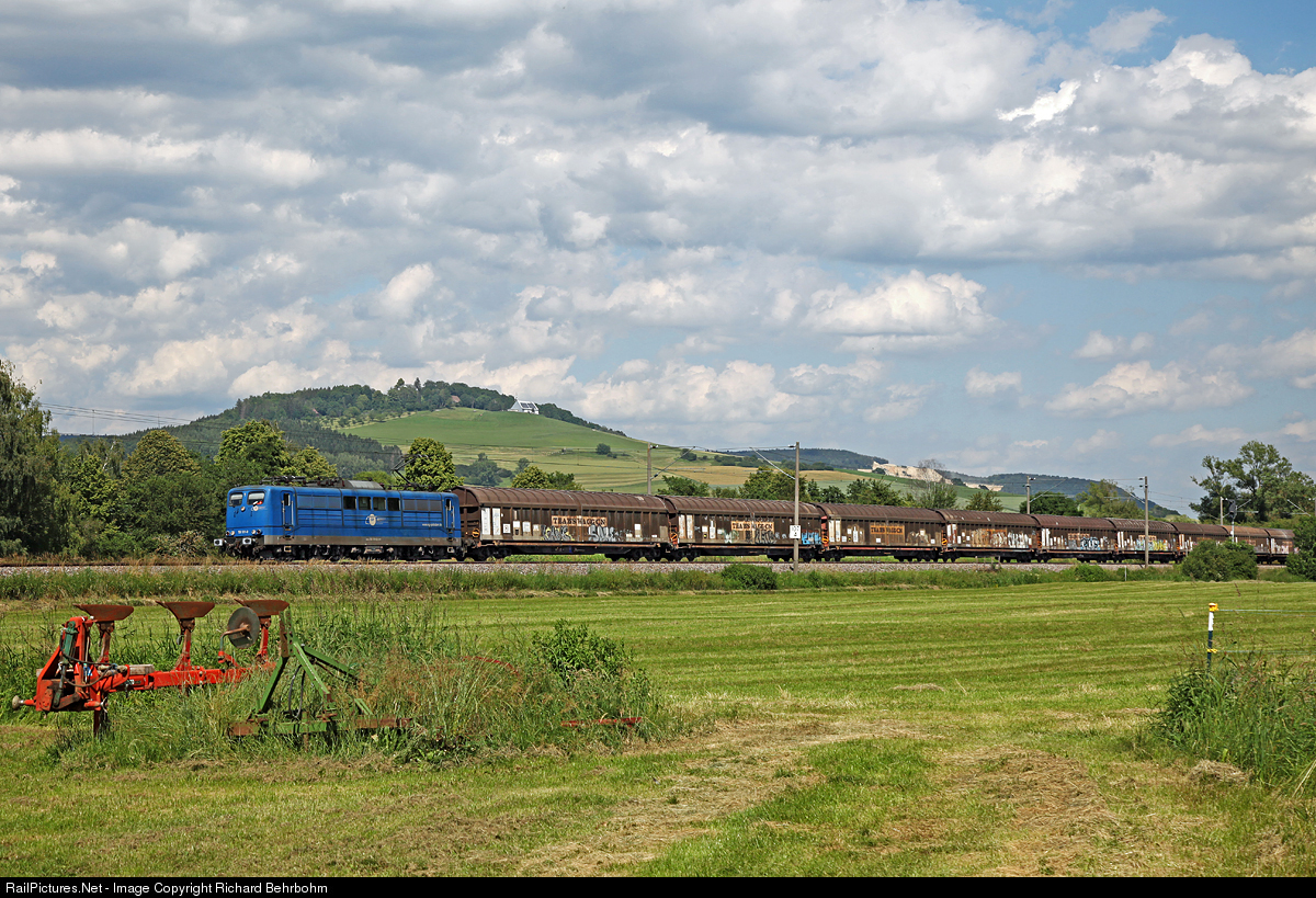 | 151 131 is a former locomotive of Deutsche Bundesbahn, now owned and operated by EGP (Eisenbahngesellschaft Potsdam). The train with empty cars is on the way from Singen to Deuna Werkbahnhof. |