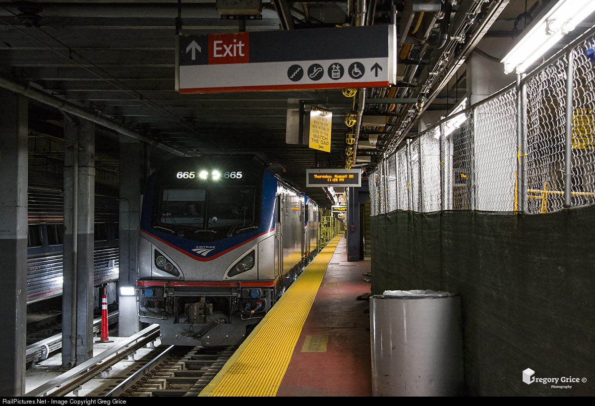 Amtrak KN704 pulls into New York Penn Station with 2 Siemens ACS-64s towing an empty 31-car welded rail train. The train is heading to Cedar Hill Yard in New Haven, CT where it will be interchanged for loading. Work trains that require travel between Hudson Yard and New Haven are usually towed with electric locomotives to comply with the "strict" requirements inside of Penn Station. |