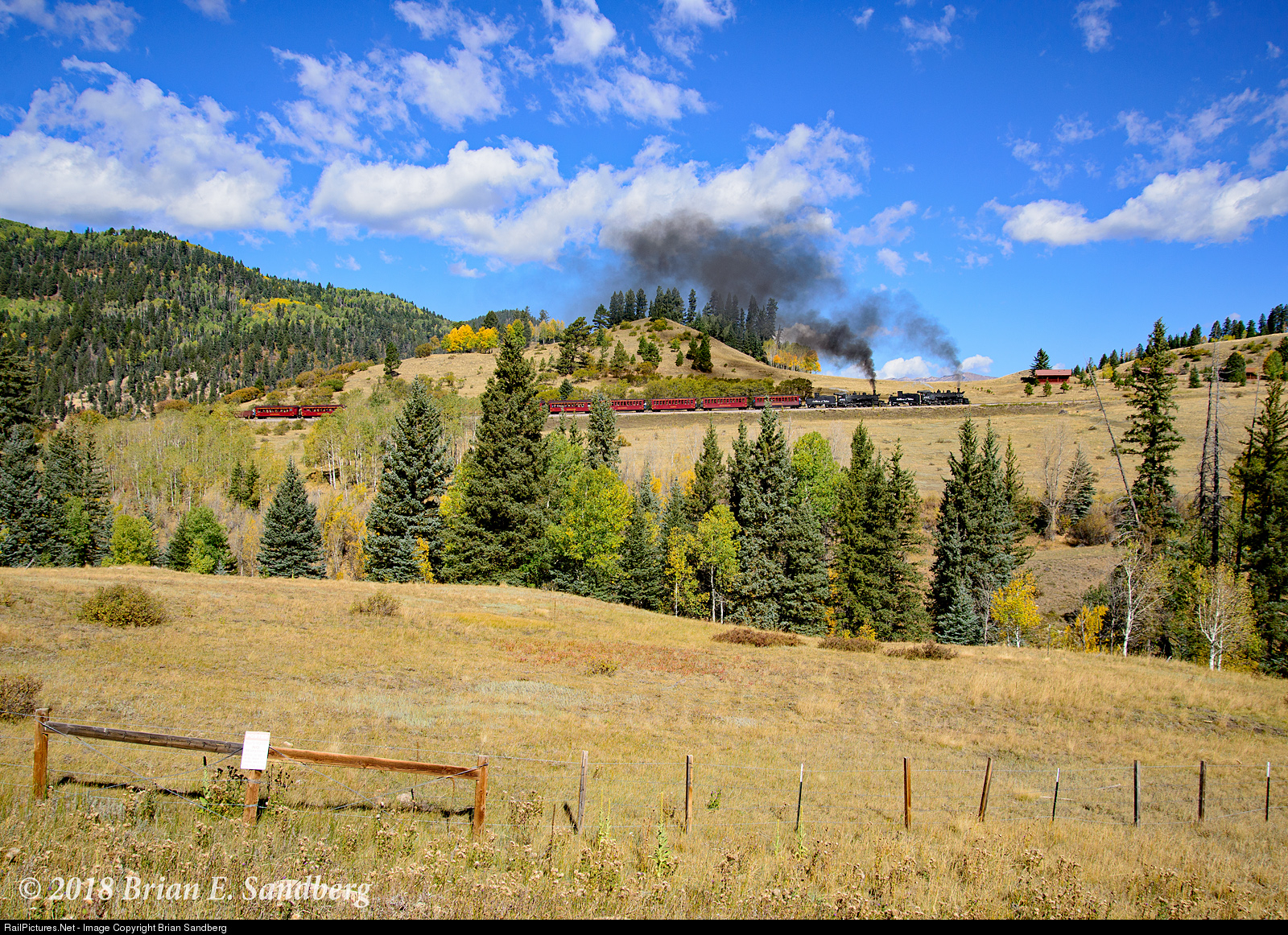 C&T K36 #487 and sister #489 team up on a morning departure from Chama, NM, passing Lobo Lodge 9/26/18. At Cumbres Pass, the #487 will be set off and utilized on a ballast train.